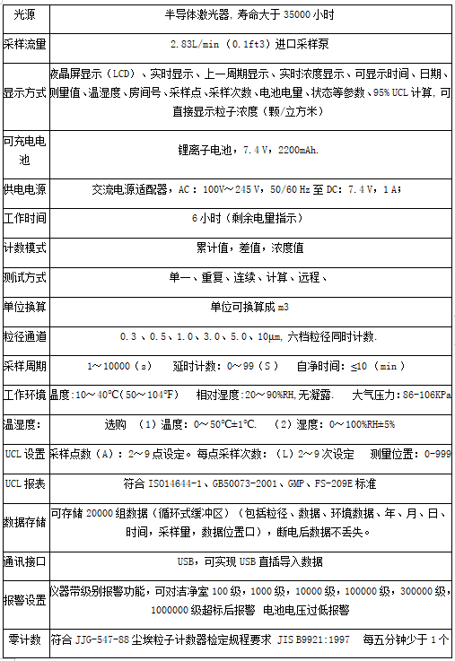 3、該粒子計(jì)數(shù)器按照國(guó)際通用標(biāo)準(zhǔn)設(shè)計(jì)(空氣采樣流量為28.3升/分),能同時(shí)對(duì)設(shè)定的六個(gè)粒徑通道進(jìn)行檢測(cè)
